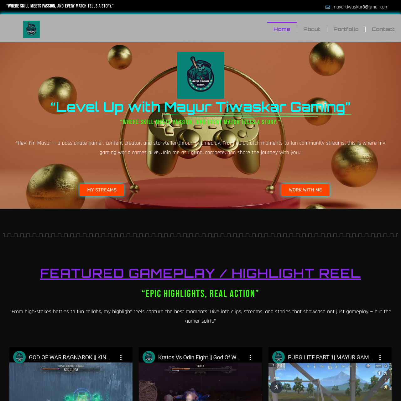 This website is a Portfolio website designed for a YouTuber who is a Gamer & wanted his Digital Presence.